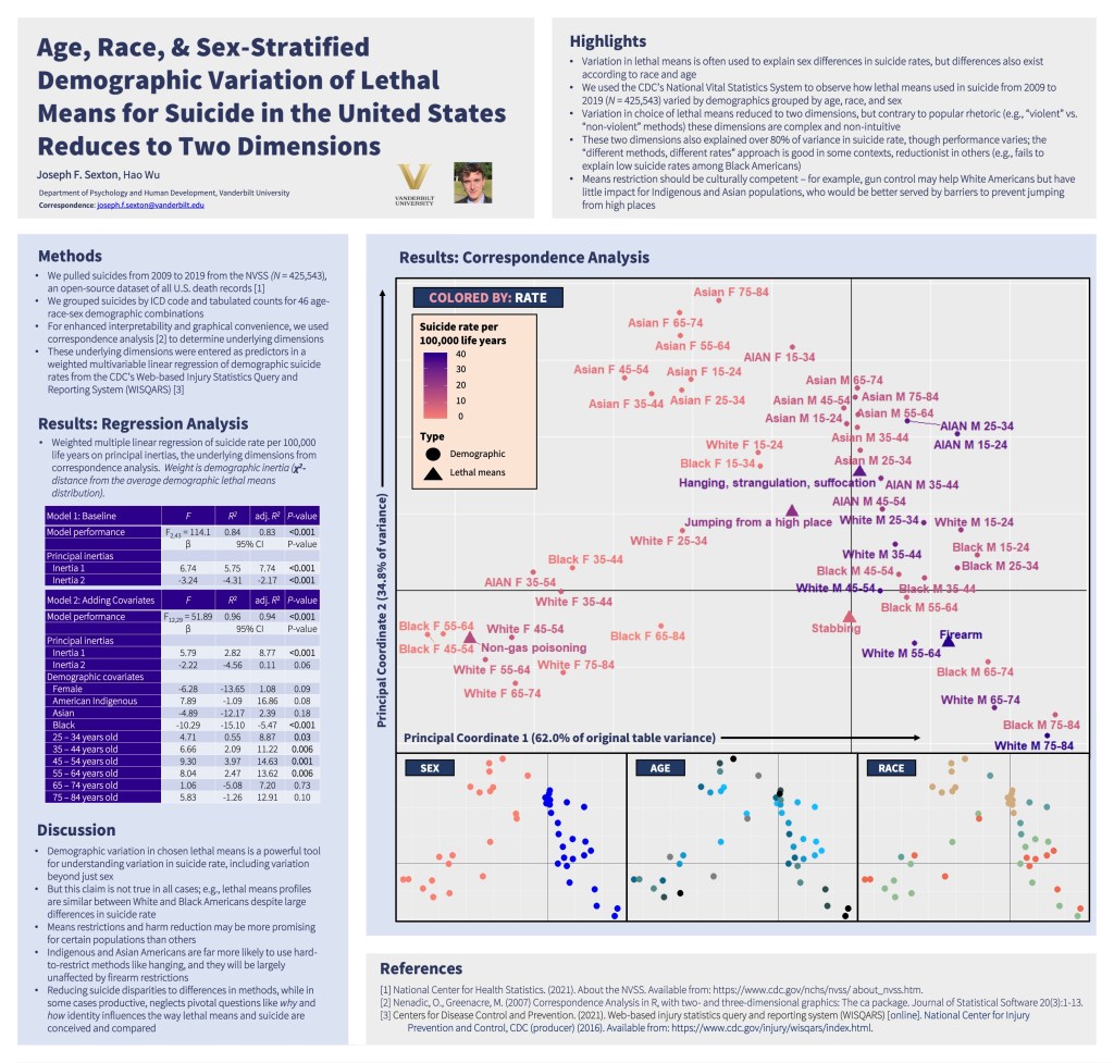 Age-, Race-, and Sex-Stratified Demographic Variation of Lethal Means for Suicide in the United States Reduces to Two Dimensions